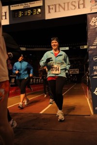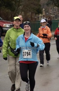 this is me plodding along just after going past the reaper. note that I am passing walkers that started racing about 1 hour before the runners started. I look like a wet rat in this picture. it was chilly and rainy that day.