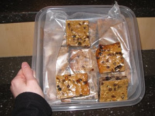this weekend I finally got the grocery shopping done and finally had the ingredients on hand to make protein bars. I’m pretty proud of them. they turned out quite well and are yummier than the store bought ones. overall I’d give these 4 out of 5 stars b/c I control the ingredients and they don’t taste remotely of cardboard. ingredient highlights (email me if you want the full recipe to try): eggs, protein powder, almond butter, peanut butter, chocolate chips, flax seed, wheat germ, rolled oats, yogurt, apple juice and cream cheese. pretty eclectic! here’s the end product: